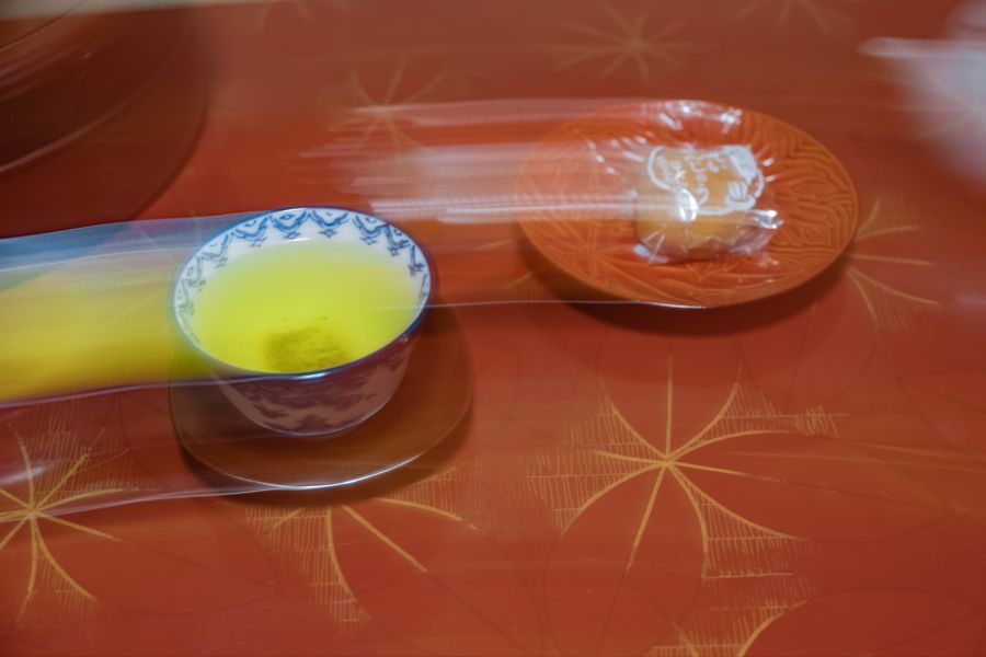 「東北への温泉旅行で宿の様子を記録しておこうと写真を撮っていた際、室内の暗いところを撮ったあと、露光時間の設定をそのままにしていて……。動くはずがないお茶とまんじゅうが躍動しているのも、おもしろいと思って投稿しました」