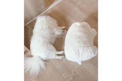 「みて。シャリ」 真っ白な小型犬の擬態にほっこり おいしそうな一枚に大反響