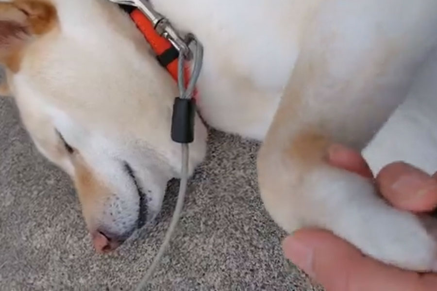 また、マイペースな一面は、話題になった動画からもわかります。動画は、日課である夕方の散歩が終わって、飼い主さんから自宅前で脚を拭いてもらったあとに撮影されました。「これは長くなる!」と判断した飼い主さん。機転を利かせてある言葉をかけたところ、しろ子ちゃんは動き出したそうです。