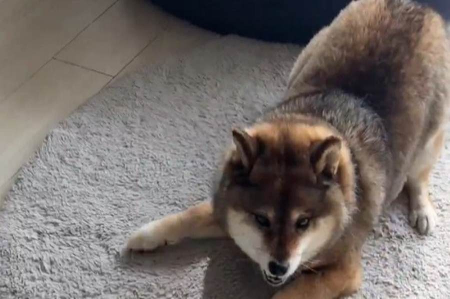 そんなコメントとともに投稿された動画には、1匹の柴犬が映っています。飼い主さんの様子をうかがいながら、シッポを振り、体をくねくねさせて、楽しそうに廊下を進みます。リビングに到着すると、喜びを抑え切れない様子でプレイバウ。ニコニコ笑顔を浮かべて、何度も回転します。