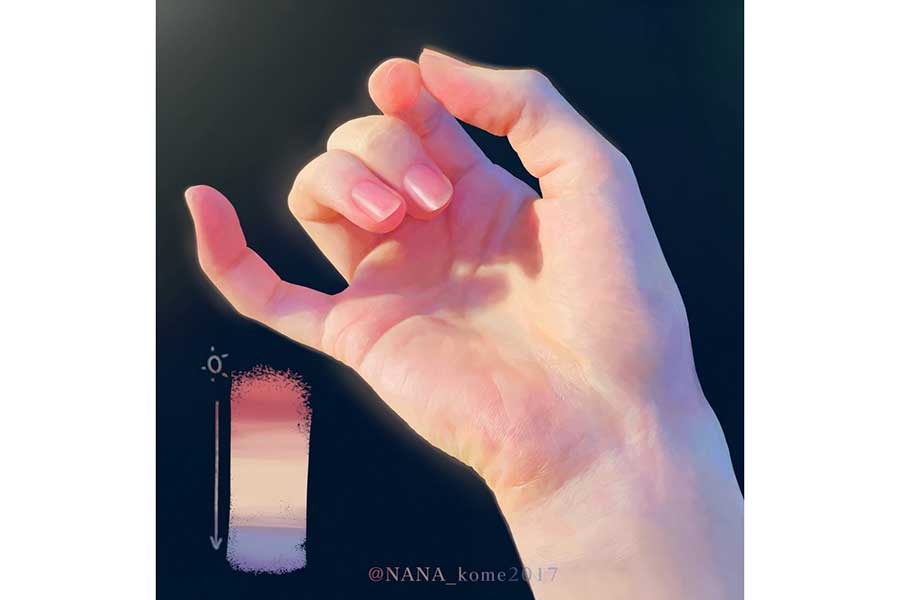 きれいな手のひらに刻まれた、細いシワ。軽く曲げた指の影──今にも動き出しそうな写実的な作品が、X(ツイッター)で話題になっています。何度見ても写真のように見えますが、実は1枚の画像です。思わず目を疑う作品には、28万件もの“いいね”が。いったい、どのように描かれたのでしょうか。投稿者のなな(@NANA_kome2017)さんに、詳しいお話を伺いました。