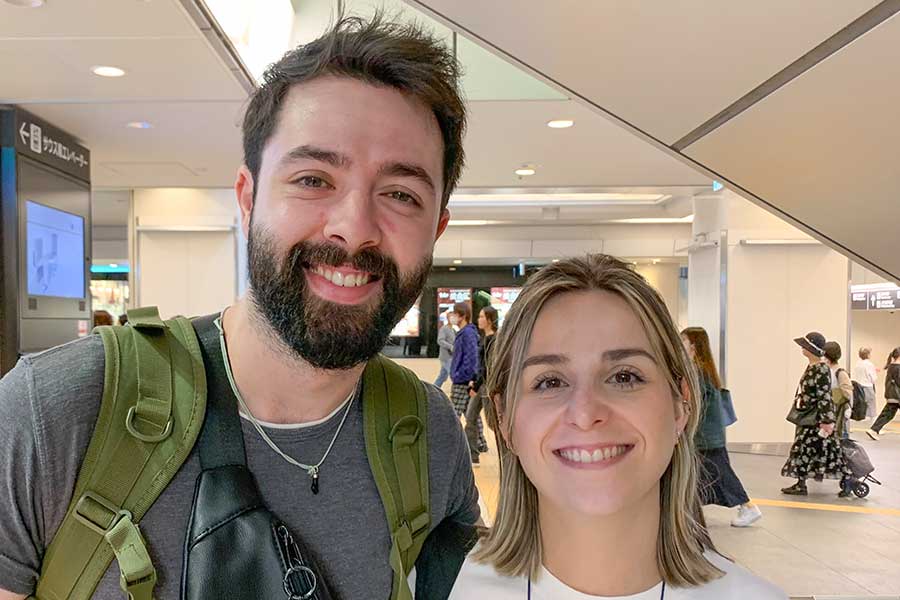 ハネムーンのため、スペイン北部ガリシア州からやってきたミケルさんとテレサさん。ふたりが日本を訪れるのは初めてだそう。22日間の滞在を予定し、大阪を皮切りに京都、姫路、広島、東京などの都市をめぐる計画です。