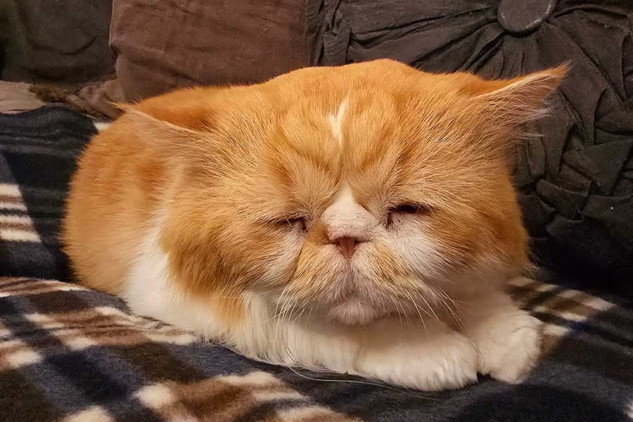 睡魔と闘っていたのは、エキゾチックロングヘアで7歳の男の子「ぽわ」くんです。寂しがり屋で甘えん坊な性格で、おじいちゃんのような顔がチャームポイントだそう。