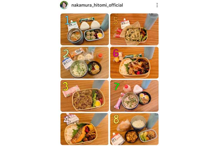 今回、投稿した8日分のお弁当では、「豚汁&オニギリ弁当」や「鶏の塩麹漬け弁当」など、いつもながら彩り豊かなお弁当が並ぶなか、「冷やしうどん弁当」が2回登場。中村さんは、「もうおかずのレパートリーが増えな~い!!!」と悲鳴を上げ、「いつも似たり寄ったり」と気に病んでいる様子です。