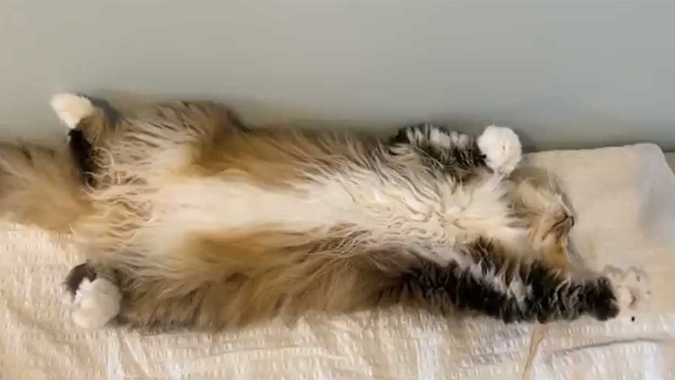 そんなコメントとともに投稿された動画には、仰向けに寝そべるねこが映っています。まるでスローモーションのように、ゆっくりと交互に動く前足。いわゆる“エアふみふみ”をしています。あまりにユニークな動作に、見ているだけで笑みがこぼれてしまいそうです。