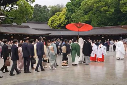 そうしたなか偶然にも、神官を先頭に、綿帽子に白無垢姿の新婦と羽織袴の新郎、そして親族が続く、結婚式の行列に遭遇。たくさんの人たちとともに、ジェイソンさんたちはその厳かな歩みを見守ります。そして、ブルースさんは「めちゃくちゃ良かったよ。伝統的な服も本当にかっこよかった」と、目を輝かせました。
