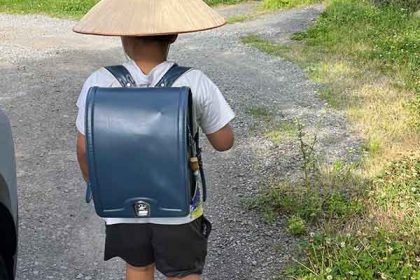 この投稿には1万件の“いいね”が寄せられましたが、さらに話題となったのはその後の投稿。「有言実行」と綴られた投稿には、ランドセルを背負い、竹笠をかぶって登校する次男の写真が添えられています。この投稿には、なんと12万件の“いいね”が集まりました。