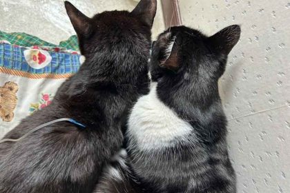 そうして頑張るはちべえくんのそばには、いつもしずくちゃんの姿がありました。とくに最期の2か月間は、点滴中もすぐそばでぴったり寄り添い、まるで「頑張って」と励ますかのように、体を舐めてあげていたといいます。