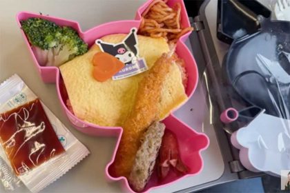新幹線の車内でクロミちゃんの駅弁を開けたティナちゃんは、大好きなキャラクターが描かれたケースに「私のかわいいクロミちゃん」と大興奮。オムライスやエビフライ、ハンバーグなどの華やかなメニューに笑顔が弾けて、「マジでかわいい」とテンションが上がりました。
