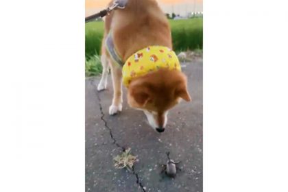 【動画】「カブトムシの覇気に負けた柴犬」 興味を示すも…冷静な判断にほっこり 実際の投稿