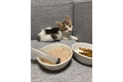 取り残された子ねこは必死に鳴き続け、その声を聞いた常連さんが、ねこの保護に慣れている大村さんに相談したのです。大村さんは洗濯ネットを使って保護しましたが、子ねこは手で抱き上げて保護できるほど衰弱していたといいます。保護をしたマンションが、タルトタタンの有名店があるマンションだったことから、「タタン」ちゃんという仮の名前をつけました。