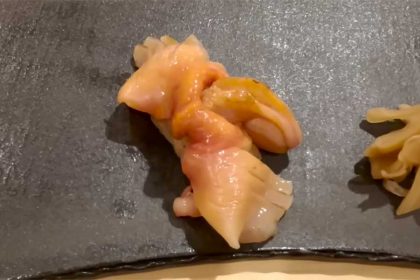 そんなふたりが、チャンネル運営者のDaisukeさんに案内されたのは、隠れ家的な雰囲気の寿司店。カウンター席に座ったふたりは、職人の技を間近で見ながら、さまざまなネタを堪能することに。知らない食材の数々に目を輝かせて、味わっていきます。
