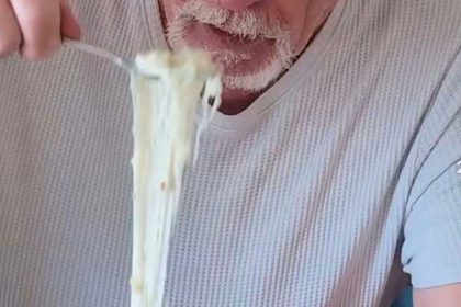 まずはボウルにじゃがりこを入れ、そこに裂けるタイプのチーズと熱湯を加えます。ラップをしてしばらく待つ間、オレリアンさんは両親に「これが何になるかわかる?」と質問を投げかけました。両親は「チーズケーキ……?」「もしかしてチーズフォンデュ?」と、何を作っているのか想像もつかない様子です。