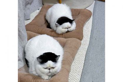飼い主さんの家にはもう1匹、先住ねこで10歳の男の子「ぼっこ」くんもいます。3匹ともエキゾチックショートヘアで、仲良く暮らしています。