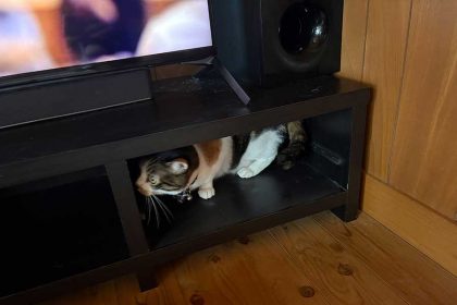 さらに、その横にはねこのシッポがちょこんと伸びています。まるで“ふたり”で仲良く秘密基地を作っているような、愛らしい光景です。