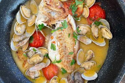 レンコダイにアサリ、そして、イタリアンパセリ。フライパンの中で、見るからに色鮮やかなアクアパッツァができ上がっています。