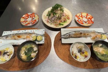 食卓には冷しゃぶのほか、焼きサンマやサツマイモごはんといった秋ならではの料理も並びます。旬の食材を使い、季節感を意識したおいしそうな夕飯を前に、伸介さんも「すっごいおいしそう」と感激の声を上げました。