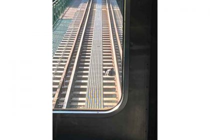 線路の上を歩くクマ 警笛にも動じず