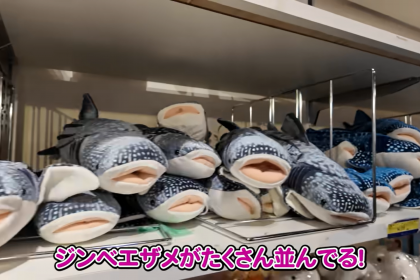 水族館を心行くまで楽しんだ3人は、最後にエライジャくんのためにお土産ショップへ立ち寄り、ジンベイザメのぬいぐるみを購入することに。ぬいぐるみひとつとってもカラーバリエーションがあることに感動したリネルさんは「いろんな種類があってびっくり。これはすごすぎる!」と驚きの声を上げます。