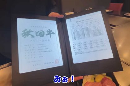 こうしたブランド証明書には、牛肉の品種や生産地、肉質等級などが記載されています。日本では品質証明のほか、食体験の一環としてお客さんに見せることもあるようです。味だけに限らず、食へのこだわりを示す日本らしい体験に、3人は深く感動した様子。