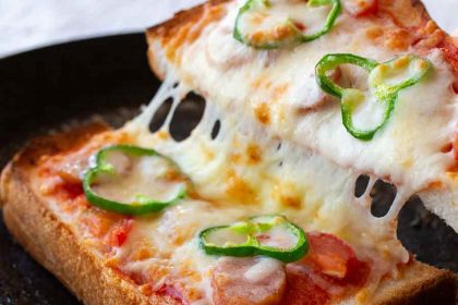ソースを塗った食パンに具材をのせ、最後にチーズも乗せてオーブンに入れたりゅうさん。“ピザトースト”が完成しました。しかし、エヴァさんは「これ、ピザじゃないよ」と反論。そして「お父さん、ごめん」と言いながらひとくち食べました。