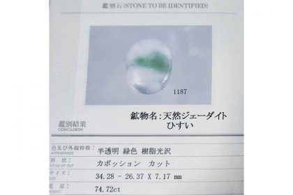 「見てみて、元値33万円だったけど閉店するからって4万円で売ってもらった鑑定書付きの糸魚川翡翠のペンダントトップ」
