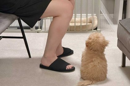 そんなコメントとともに投稿された写真には、飼い主さんの足元に座る子いぬが写っています。ちょこんとおすわりして“パパ”を見上げ、話に聞き入っているような後ろ姿です。なんとも愛らしく、ほっこりしてしまいます。
