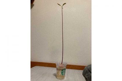 投稿に添えられた写真には、カフェの使用済みプラスチックカップに水が張られ、その中でアボカドの種を育てている様子が写っています。