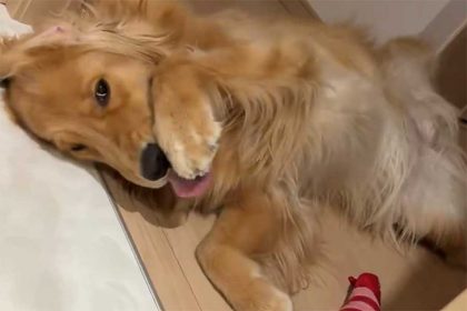 まるでねこのような仕草を見せるゴールデンレトリーバー