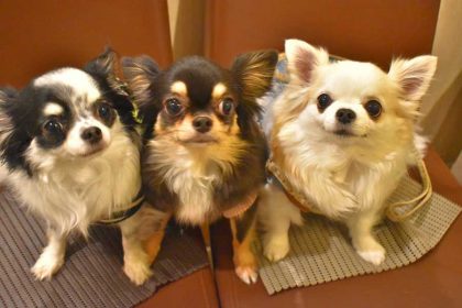 仲睦まじい姿を見せたのは、7歳の女の子「小羽」ちゃんと「小梅」ちゃんです。同じくチワワで6歳の女の子「小毬」ちゃんと暮らしています。3匹とも元保護犬です。