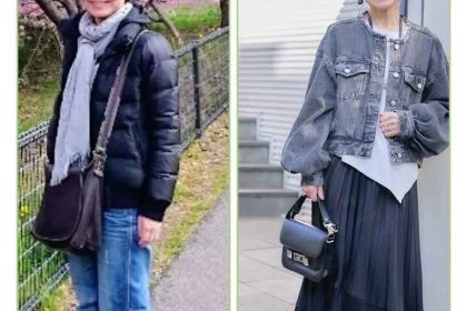 一方、現在の野田さんは、ナチュラルなグレイヘア。グレーのデニムジャケットに、黒のヘムスカート合わせた、モノトーンファッションです。上品な笑みを浮かべ、その佇まいからは内面の美しさが自然とにじみ出ています。