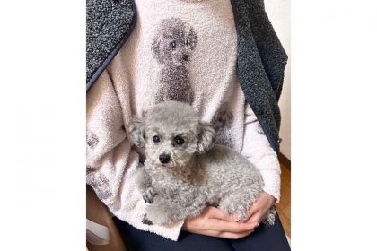 そんなユーモアたっぷりのコメントとともに投稿された1枚の写真。そこには、飼い主さんの膝の上でちょこんとお座りをする、1匹のトイプードルが写っています。
