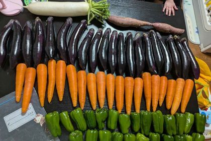 今月上旬、SNS上に投稿された写真には、今にもはちきれんばかりのビニール袋と、その上にうず高く積み上げられた大量の野菜が収められています。もう1枚は、帰宅して袋の中身をテーブルに並べた写真。大根1本、サツマイモ2本に、立派なナスが20本、人参19本、ピーマン25個という途方もない数の野菜が並んでいます。詰め放題はなんと1袋500円。物価高が続くなか、大量の野菜をお得に手に入れることができたそう。