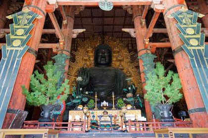 東大寺大仏殿に安置されている奈良の大仏。高さが約15メートルで、その大きさと存在感に思わず息をのむ人も少なくありません。広大な堂内に静かに座す姿に、エヴァさんも圧倒されたようです。