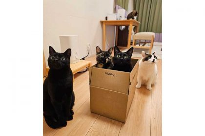 ねこたちはみんな段ボールが大好き。そのため、荷物が届くと段ボールを空けて、一度みんなの前に置くことが日常になっているそうです。
