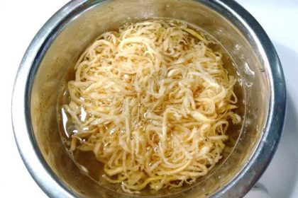 切り干し大根の調理は、水洗いして汚れを取ったあとに水で戻す工程が一般的ですが、長時間水に浸しておくと、カリウムなどの水溶性の栄養素が溶け出してしまいます。旨味もあるので、切り干し大根の戻し汁は、そのまま煮汁やスープなどに使うと良いでしょう。