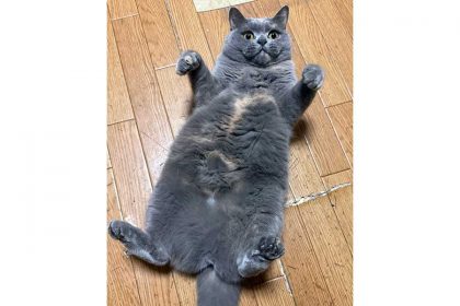そんなコメントとともに投稿された4枚の写真には、フローリングの上に仰向けになり、見事な“へそ天”を披露するねこが写っています。前足と後ろ足をキュッと曲げ、まん丸な瞳でじっとこちらを見つめる姿は、まるで「お腹を撫でて」と誘っているかのよう。茶色がかったやわらかそうなお腹の毛を見ると、つい手を伸ばしたくなります。