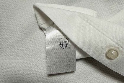 ブランド品のビジネス用の白シャツ。タグの部分に、丸印で「特」と書かれています。店員が手書きで記したものだといいます。