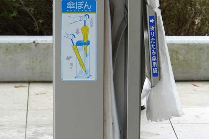 雨の日の入店をスムーズに 画期的な「傘ぽん」に釘付け