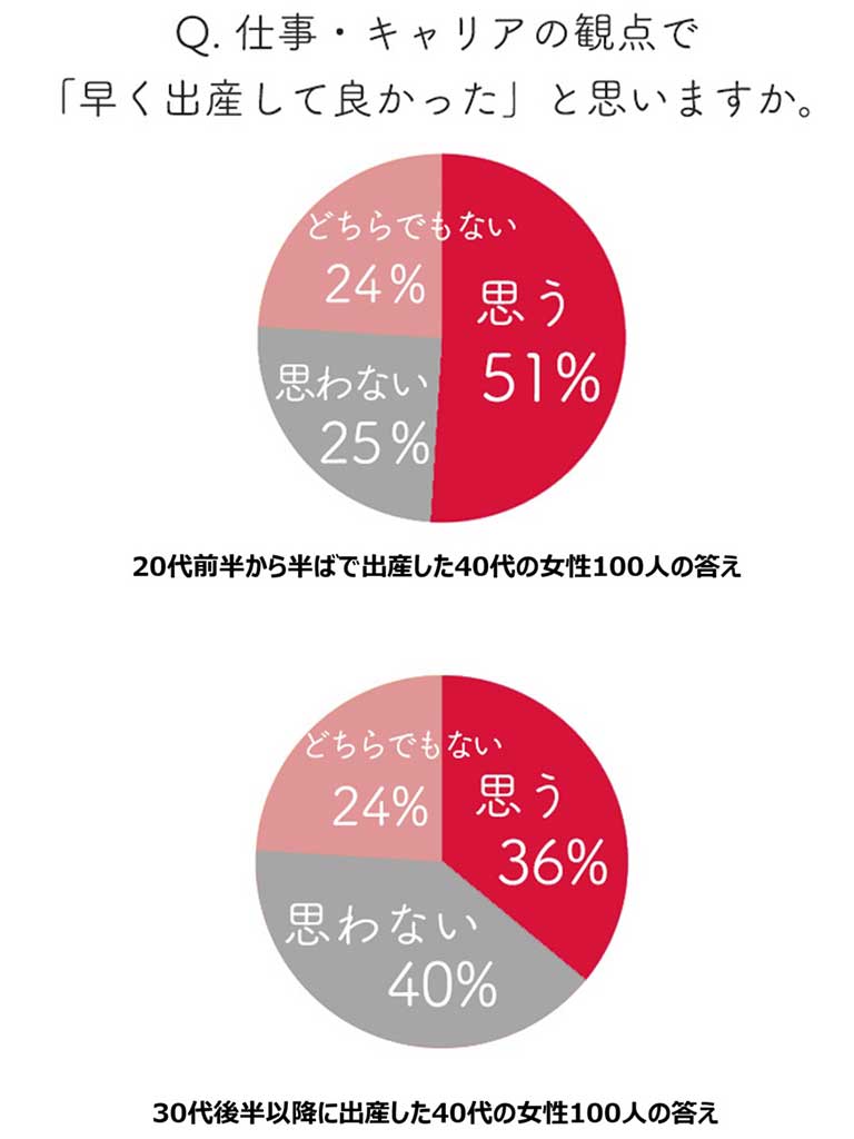 仕事・人生 【画像】キャリア視点での「産み時」は20代前半? 30代後半? 「出産して良かった」と思った人が多いのはどっち? 公開日:2018.01.01 / 更新日:2026.04.04 B! 【出典:Woman type】 調査対象:20代前半~半ばで出産した40代女性100人、30代後半以降に出産した40代女性100人