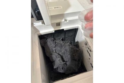 そんな叫びとともに投稿された写真には、洗濯機の排気口付近にあるフィルターから取り出された、驚くほど巨大で分厚いホコリの塊が写っています。